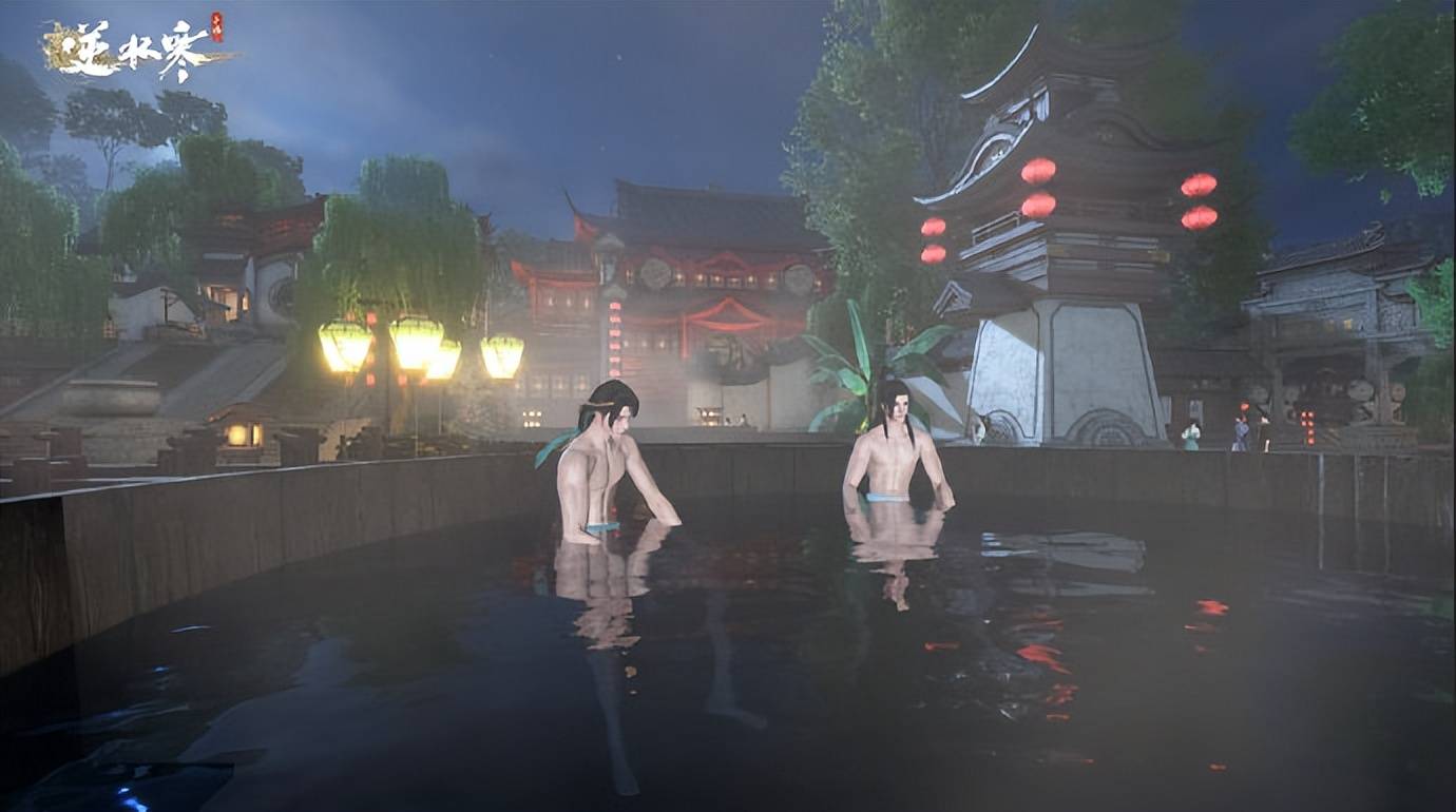 要说东北澡堂,那一定是突破南方人想象的存在。澡堂里不仅可以泡澡搓澡,还能吃吃喝喝玩玩,真正的娱乐一条龙。不过,逆水寒手游这个澡堂更加的浪漫一点,咱们是露天的!在泡澡的同时还能与路人互动,也是一种很新奇的体验。澡堂可以漏风,但是搓澡服务是一定不能没有的。【双人搓澡】互动功能上线后,大家可以把后背放心的交给队友了(双重意义)!这波赛博搓澡也是为了迎接新年嘞!
