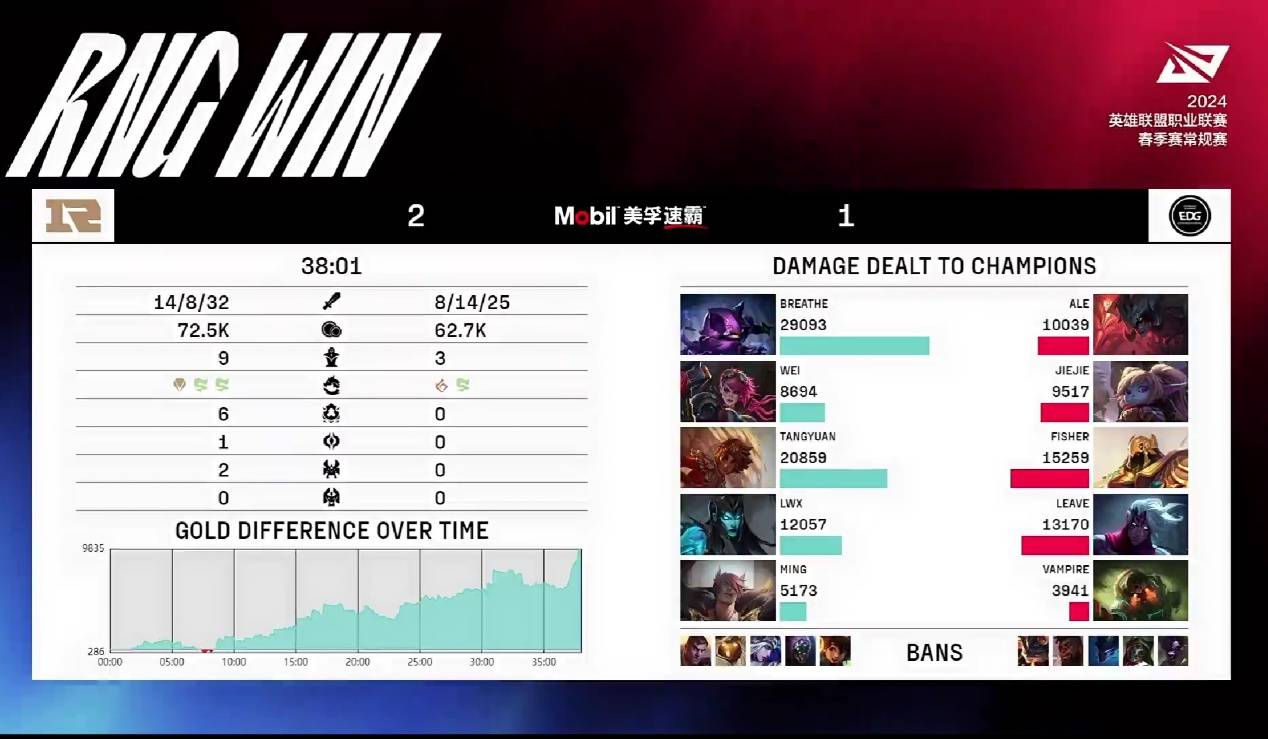 LPL春季赛的比赛在昨天正式开战,第一天的比赛日安排了两场比赛,节目效果全部拉满,而且两个BO3也都打满了,其中EDG与RNG的大战最终以RNG的获胜告终。