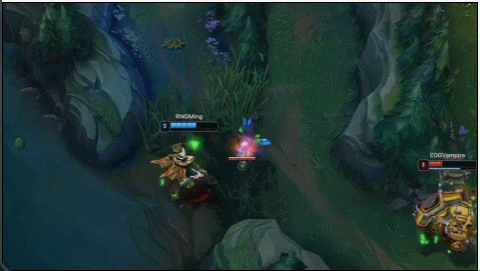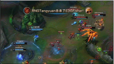 第一个名场面就是Ming,使用一手瑟提在草丛排眼,结果A了两下后,第三发平A被取消后又出草进草,到最后也没A出最后一下,被观众戏称为闪电五连鞭,还被导播成功捕捉到了这个画面。