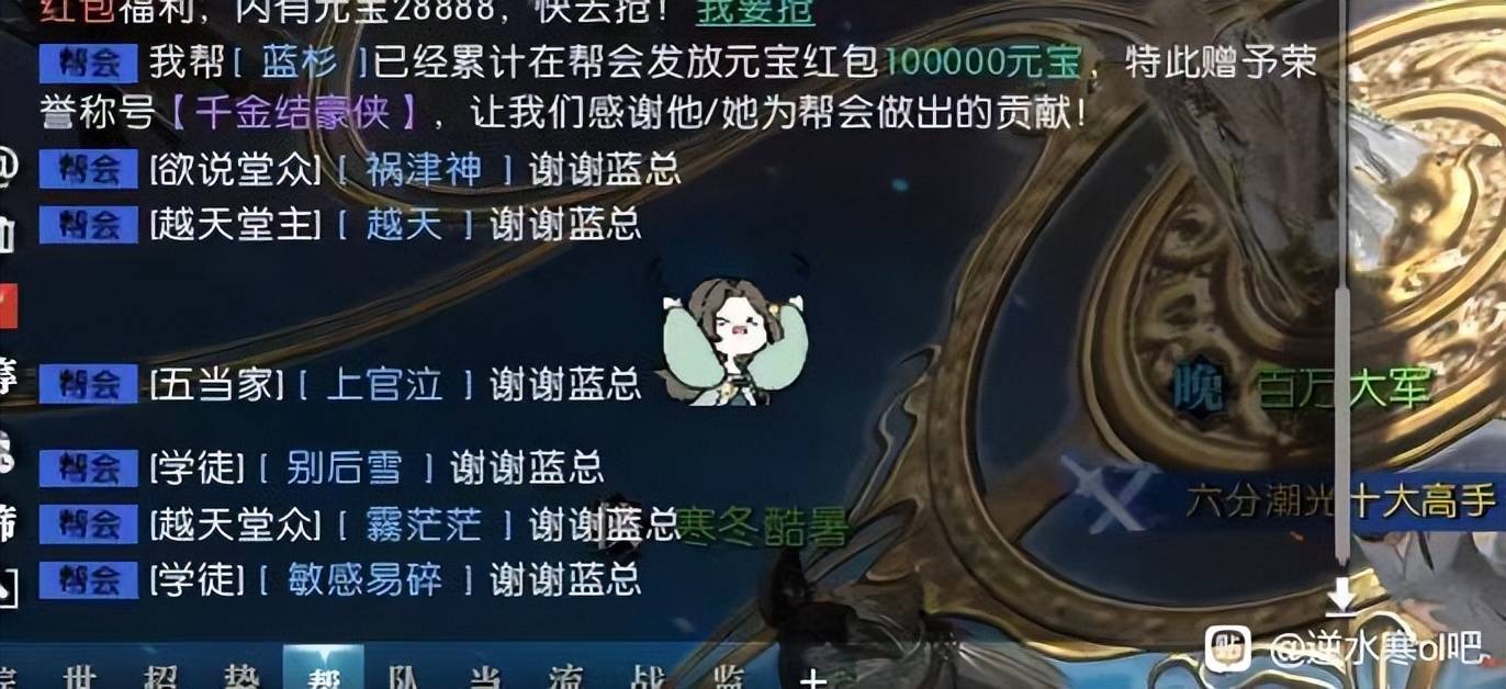 当时《逆水寒》中的土豪大佬大多还是以提升自身装备数据为主流,而蓝杉则根据自己以往的游戏经验,早早的开始对帮会团队进行了建设。