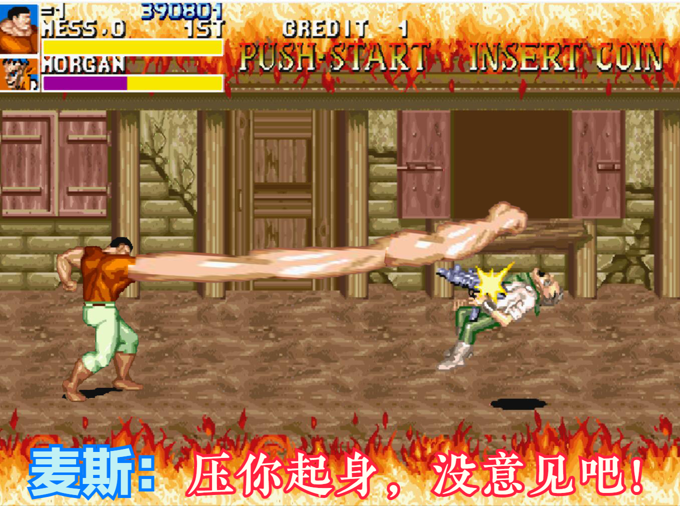 摆拳,是《快打旋风》系列的核心玩法,任何敌人在纯熟的摆拳面前都会失去战斗力。再凶狠的BOSS只要被摆拳给沾上了,那只有死路一条。