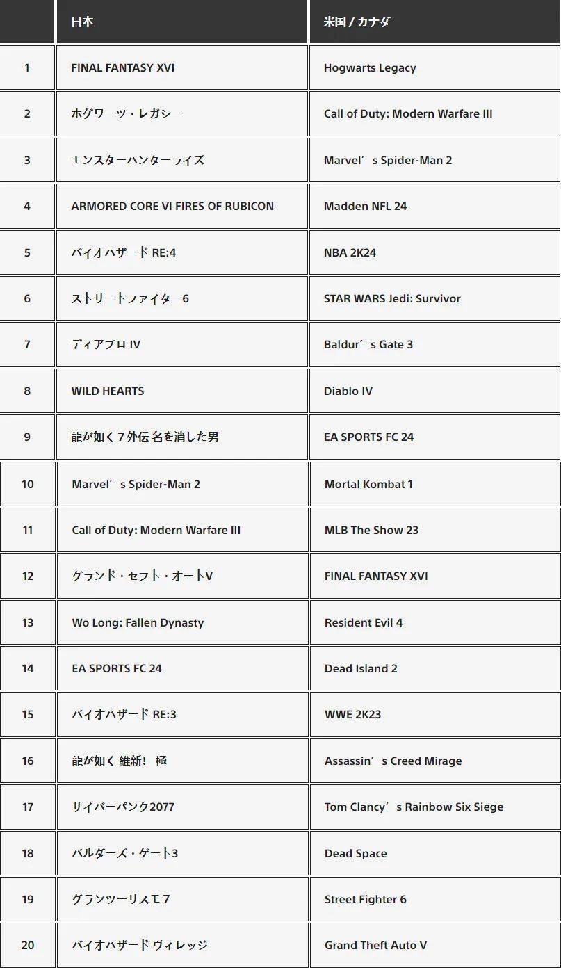 今天SIE公开了2023年度日本和北美两个地区PS Store下载榜单。