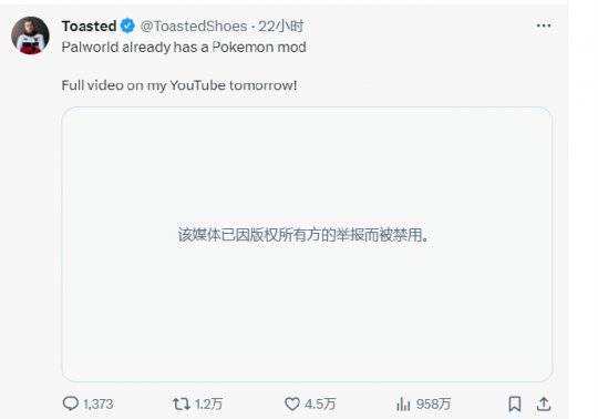 尽管《幻兽帕鲁》中的角色设定跟《宝可梦》很像,但你并不能从游戏中找到一只真正的宝可梦。几天前一位民间作者,公开了自制的将帕鲁替换为宝可梦的MOD引发了外界关注,可很快似乎就因为版权问题被下架了视频。