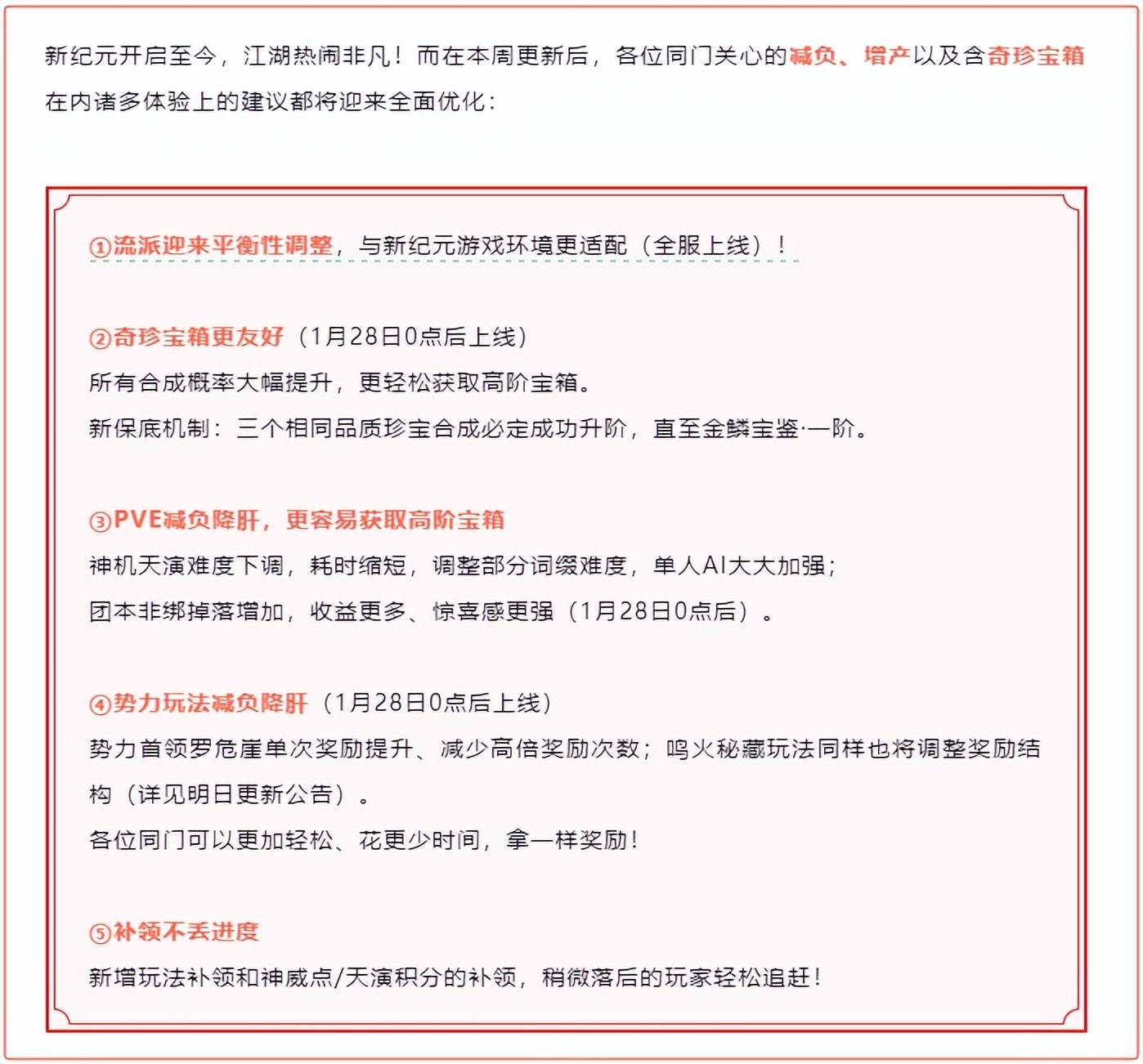 增产降消的结构性调整从2019年开始,到2021年取得了阶段性的成功。当时的游戏玩法内容已经过度丰富,虽然玩家们无论玩什么都能获得奖励,但也造成了一些玩家“什么都想要”从而爆肝的问题。于是,从2021年开始,游戏又开始执行了一系列的降肝减负操作,对系统进行了新一轮的调整。