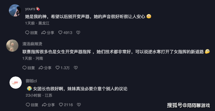 而浮夸这次直播也算是误打误撞揭开了这位19岁小姐姐的庐山真面目,才让大家发现原来游戏里很多女指挥的技术也非常能打,并不输给男玩家。不少玩家开始在评论区希望小姐姐不要再开变声器,咱们女玩家照样能顶半边天,再说还有几十万粉丝做她的后盾!