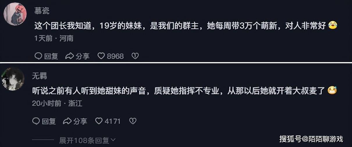 之后有了解内幕的观众在直播间和大家解释,这位团长其实是19岁的小姐姐,从逆水寒手游开服就玩了,一直喜欢打副本。渐渐的,她也喜欢上带萌新打副本,开麦当团长,指挥走位都说的非常好。