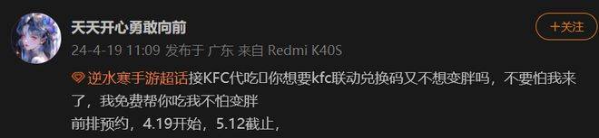 代吃一单收100,一天狂赚3000,《逆水寒》手游和肯德基的这场联动,彻底获得双赢,也成绩激发了玩家的第二人格,这样的联动请多来一点。