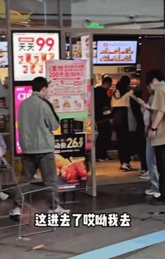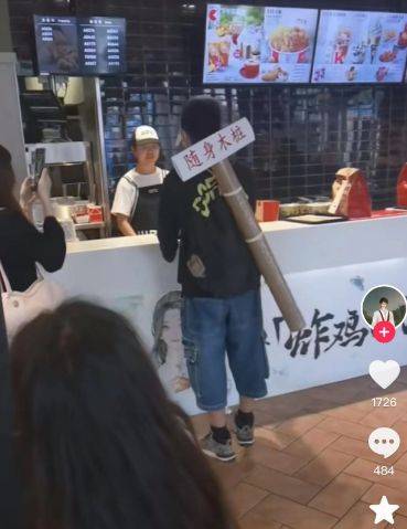 最丢人的,是玩家争先恐后跑到肯德基门店去喊口号,不少人还主动给自己加戏,比如,这位随身背着木桩去门店的小哥哥。