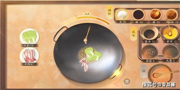 4、选择图下的食材,把调料放进去进行翻炒。