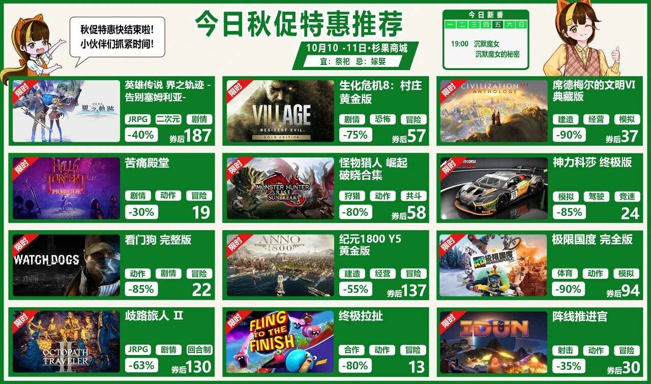 杉果商城“秋季特惠限时闪促,《文明VI 典藏版》仅0.9折!《怪物猎人:崛起 破晓合集》再次突破Steam史低!