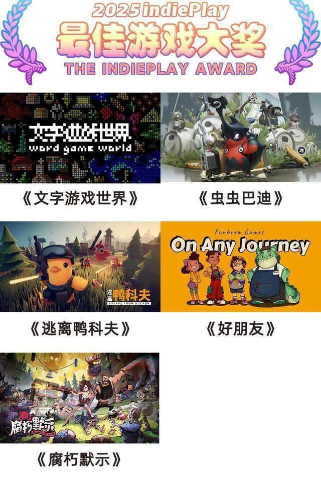 2025 indiePlay各奖项入围名单如下(排名不分先后):