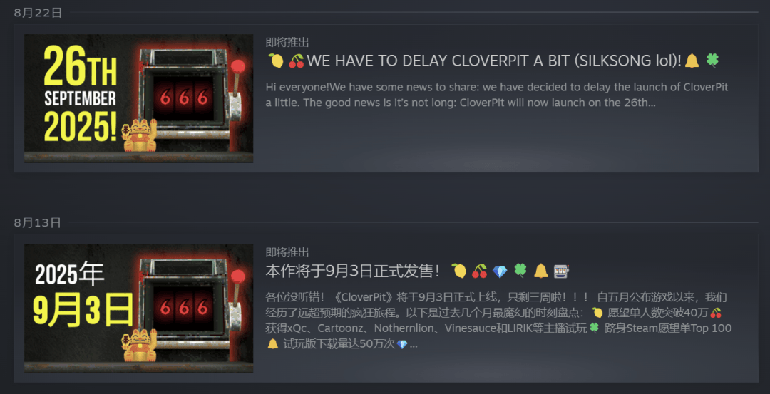 而《四叶草深渊》再次来到大众视野,是因为回避与《丝之歌》“撞车”,选择延期发售。尽管游戏在当时已经有80万余次的DEMO下载,50万多的愿望单,但这些数据显然不足以让一个初出茅庐的独立团队,有信心去与《丝之歌》同台抗衡。