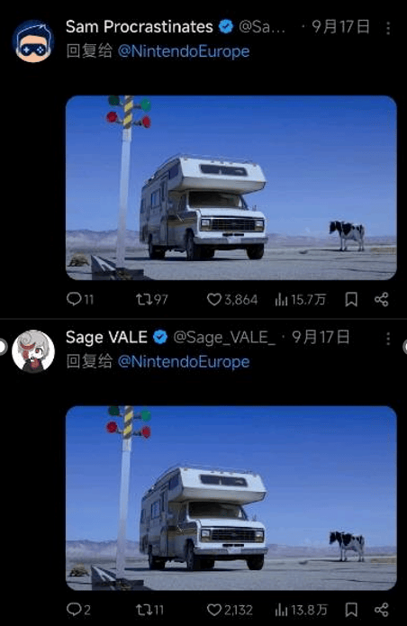前阵子,欧洲任天堂发了一个《马力欧赛车:世界》“线上赛模式”的预告推文。但评论区里的玩家们,都在发同一张房车照片,队形齐整,获得的点赞比官方还多。