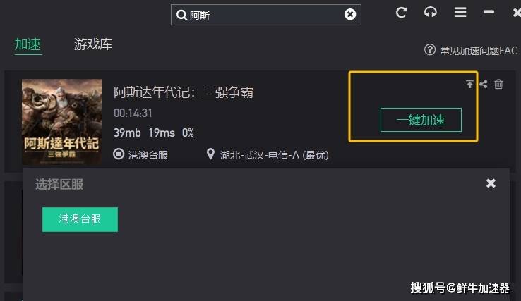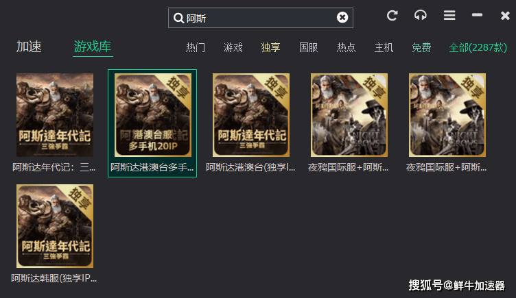 首先打开鲜牛加速器,搜索:阿斯达年代记