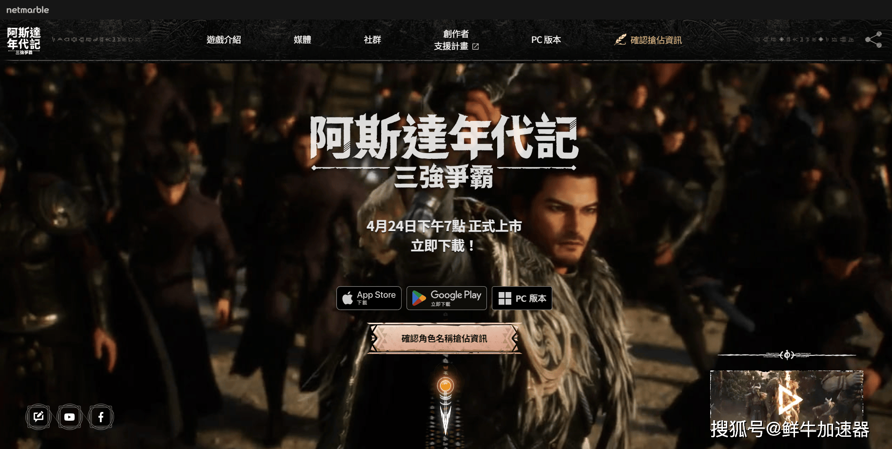 韩国游戏公司Netmarble 网石旗下的最新三端互通MMO网游《阿斯达年代记:三强争霸》(Arthdal Chronicles)已经开启预下载。《阿斯达年代记:三强争霸》是一款大型多人在线跨平台MMORPG游戏,玩家可以在其中体验「阿斯大陆」的昼夜景色、气候变化、政治经济冲突,以及盟友与3 个不同势力间的合作。游戏将于4月24日韩国时间晚8时(即北京时间晚7时)在韩国和中国的港澳台等地正式上线。