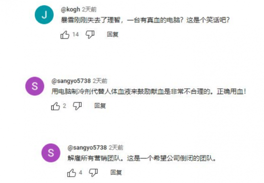 必须要提到的一点是,官方还在这台设备的液冷中加入真人的血液,颇有一种给神器滴血认主的意味。不过当时还是有部分网友对这种营销手段并不买账,认为血液应该用到正确的地方。