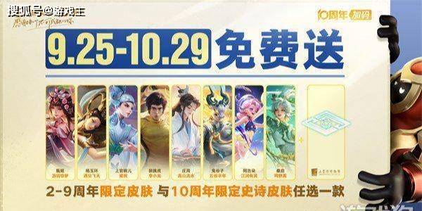 福利9:【十周年福利加码】送2-9周年限定皮肤与10周年限定三星堆主题【史诗】皮肤