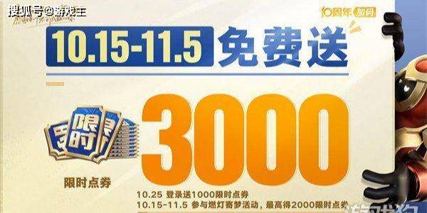 2、10月15日-11月5日,参与燃灯寄梦活动,最高免费得2000限时点券。