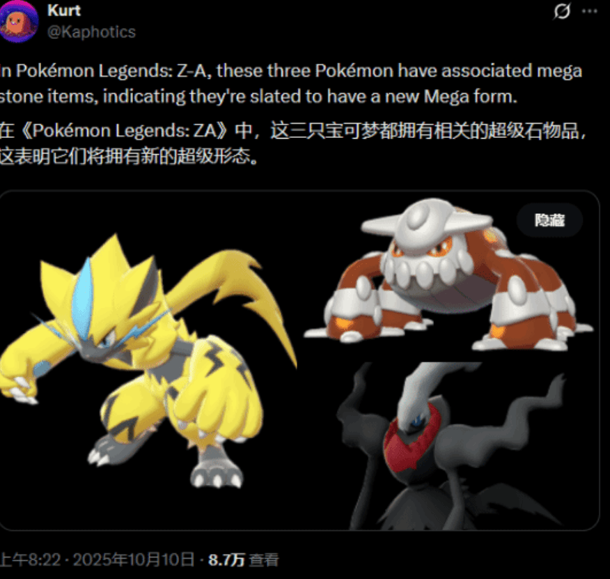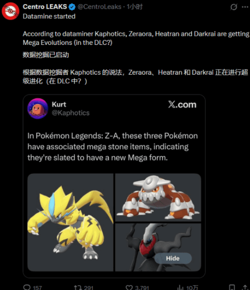10 月 10 日预下载通道开启,10 月 16 日正式登陆 Switch 双平台 ——《宝可梦传说 Z-A》直接把卡洛斯地区的密阿雷市改造成了 “活的冒险世界”,全球训练家的预约量 3 天破千万!这座被棱镜塔点亮的都市藏着太多颠覆级惊喜:阔星公司打造的 “野生特区” 用全息围栏圈出生态绿洲,里面的 Mega 喷火龙会随着黄昏切换形态,而训练家能躲在小巷阴影里潜行偷袭,靠地形优势收服稀有宝可梦。