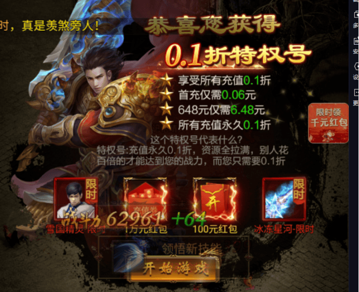 今天,我要为大家带来一个超级重磅的好消息!我们一直倾心打造的竖版传奇游戏,现在终于推出了前所未有的福利活动——所有道具竟然永久0.1折!是的,您没有听错,这个福利就在眼前,让你轻松畅玩游戏,不再为资源犯愁!