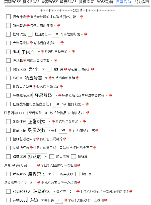 使用脚本时,我们需要根据自己的需求和游戏环境进行合理的设置。例如挂机地图、蹲点BOSS地图、定时活动等。通过调整设置,我们可以让脚本更加符合自己的游戏风格和需求,从而提高游戏效率。