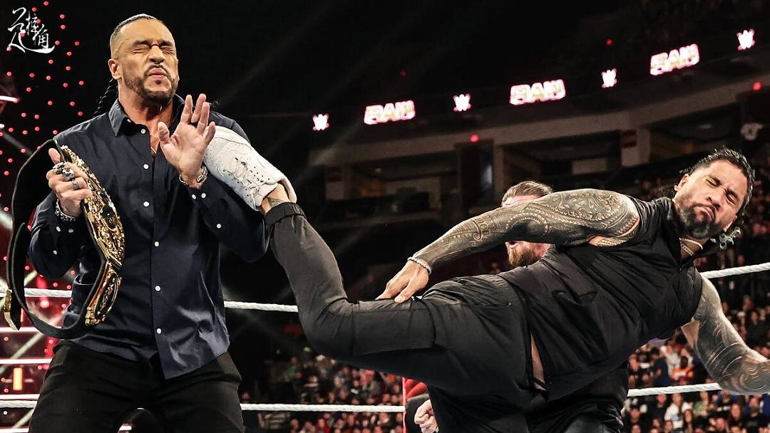 世界重量级冠军达米安 普利斯特,在同第一竞争者杰 乌索的对峙环节中,JD麦克唐纳跟个没头苍蝇一样,冲出来想要替“何老师”长脸,结果导致乌索一个Superkick不偏不倚踹在了“何老师”脸上……