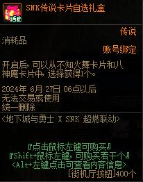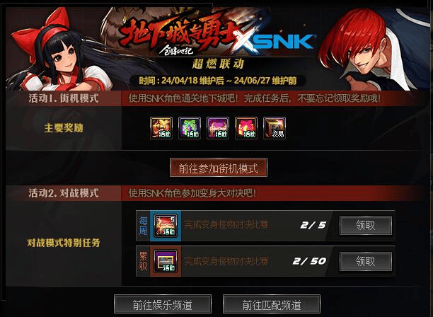 本次的联动包含SNK联动地下城、DNF x SNK怪物对决两个部分。