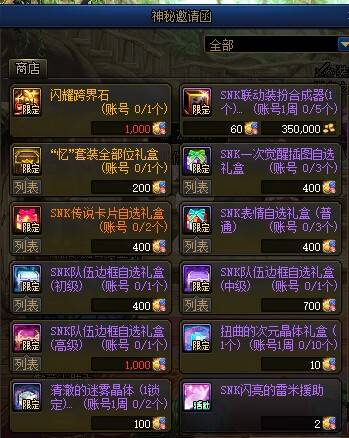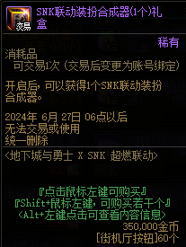 SNK联动装扮合成器,自己不合装扮,也可以拿来拍卖行卖。
