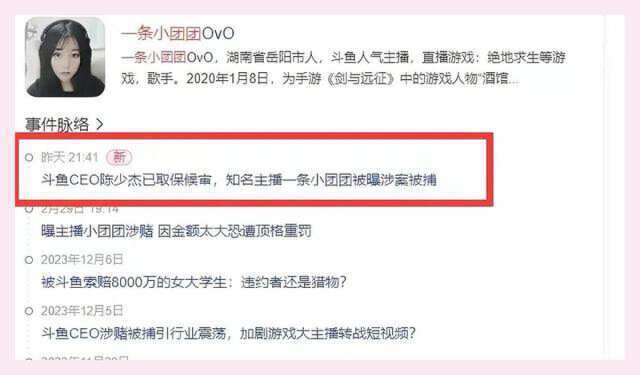 如今,“一条小团团”逐渐从网红转变为了笼中之鸟的预备群。今年3月,这位斗鱼的明星主播,身陷大额赌博案件漩涡,或将面临3至5年的刑期。