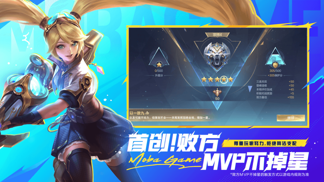 首创!败方MVP不掉星《决胜巅峰》更是首创“败方MVP不掉星”机制,让上分体验更顺滑。当你实力越强越能够快速通过升星分实现跳段晋升,能够快速的达到较高的段位水平;同时保护分机制也减少了用户因为队友实力不行带来的负面感受,单局表现好即使失败的情况下也有可能升星!游戏更尊重玩家努力,拒绝算法支配。
