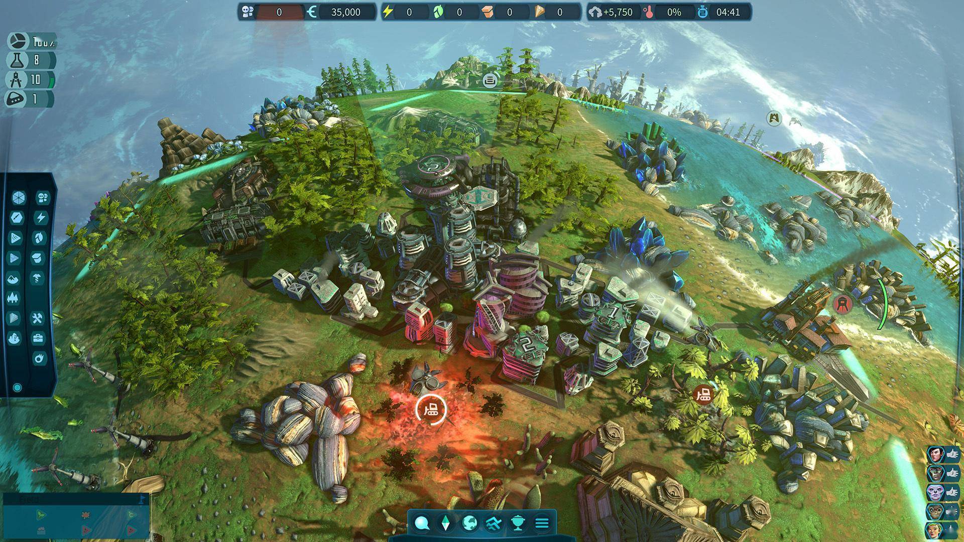 在故事战役和竞争游戏模式中,玩家可以在11个不同的星球上建立自己的文明。这些星球的地形点缀着富饶的蓝色水域、白雪皑皑的山峰和郁郁葱葱的绿色大草原,所有这些都可以被探索、居住并开採资源。