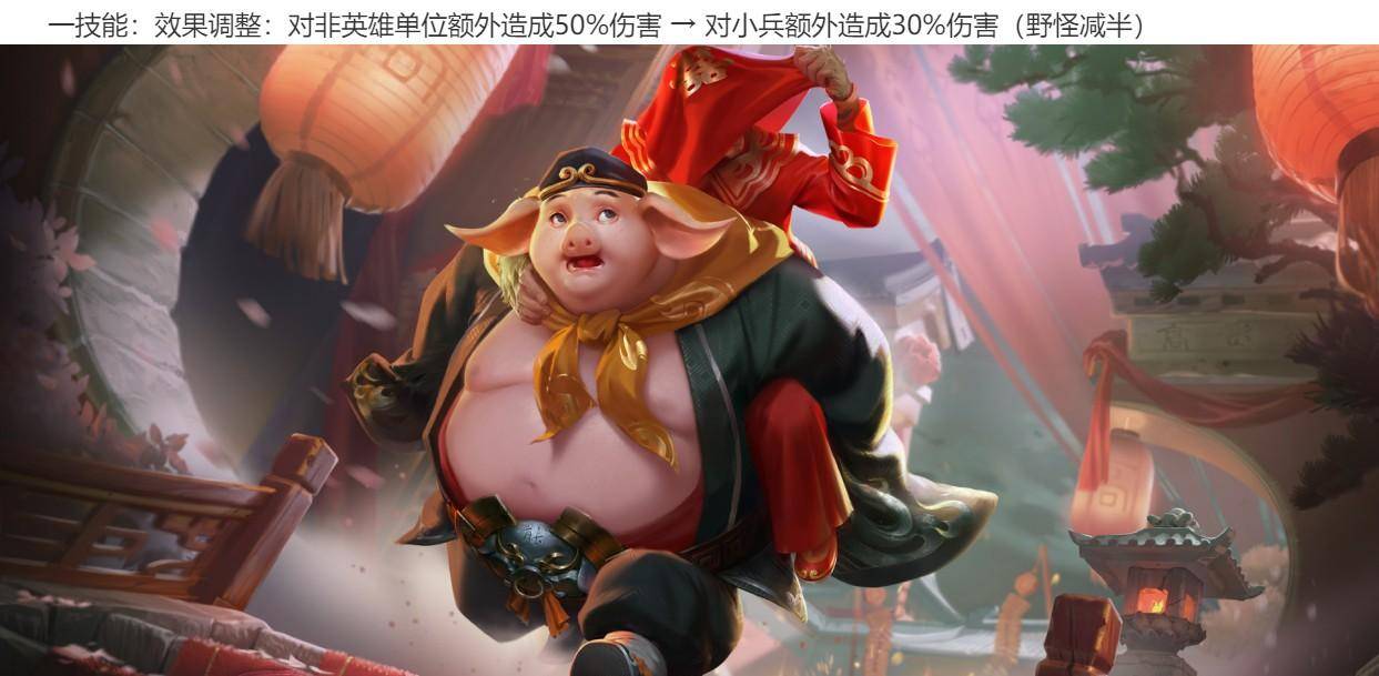 猪八戒削弱:1技能对非英雄单位的伤害大幅降低。