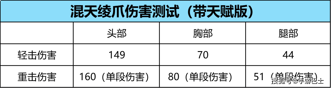 我们可以看到在数据测试方面,混天绫爪轻击伤害整体来说还是不错的,但是攻击速度方面是明显没有大多数近战武器快。而在重击方面,计算则是与其他武器不太相同,实战中命中敌方胸部时会造成80伤害,但是武器技能则将伤害进行分段表现,也就是实际对敌方造成160点伤害。