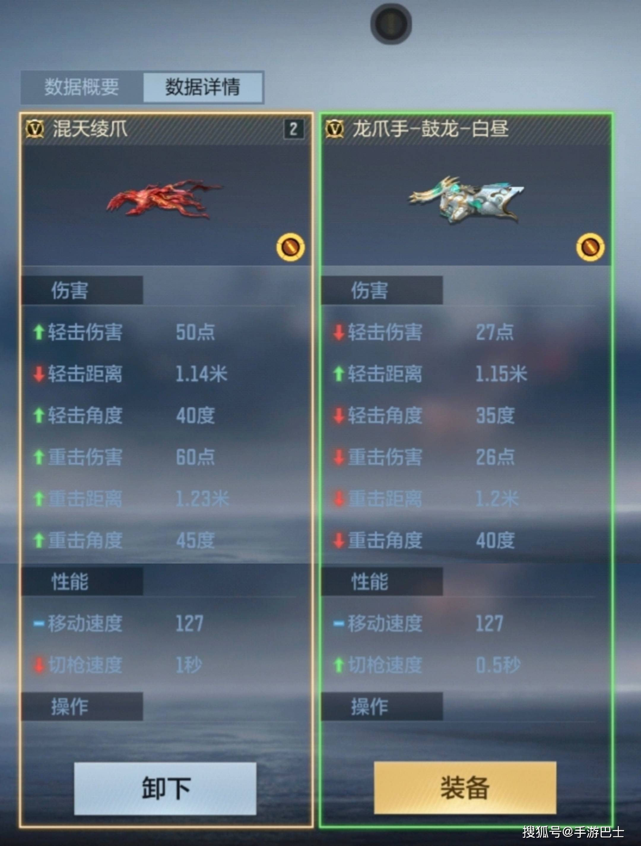 这里我们与福利武器龙爪手-鼓龙进行对比后发现,混天绫爪在伤害以及攻击距离等方面都是明显高于龙爪手-鼓龙的,虽然切枪速度方面混天绫爪达到了1秒,但是刀战模式中影响不大。同时混天绫爪相较于其他爪类武器,其攻击动作及表现形式都是略微有所差异的。