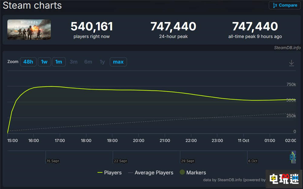 EA酝酿多年的《战地》系列新作《战地6》在10日晚上解锁,作为多人竞技游戏,PC平台的Steam玩家同时在线峰值就直接达到了74.7万,超越了Beta测试时的52.1万。