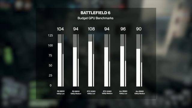 《战地6》现已正式上线,官方给出的最低配置是RTX 2060,RX 5600XT,英特尔Arc A380,承诺这些GPU可在低画质下保证1080P@30帧。