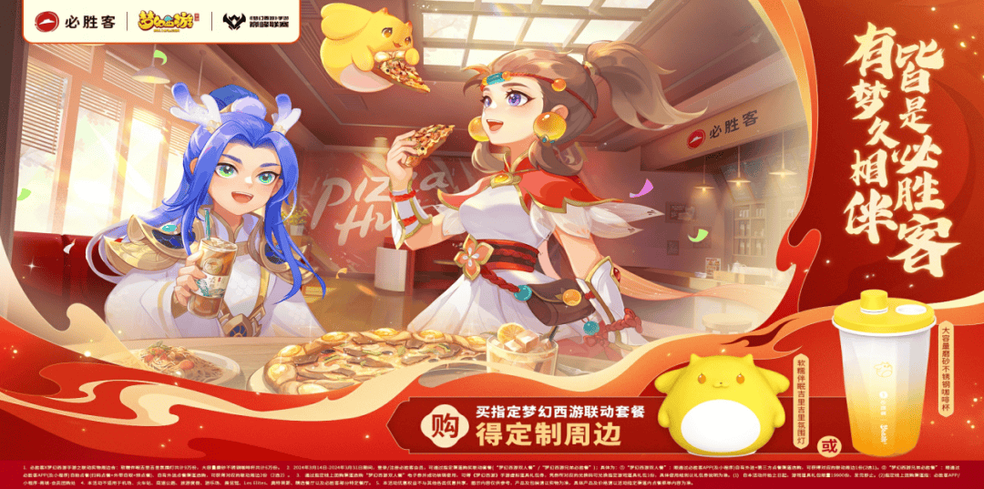 在S8赛季,《梦幻西游》手游赛事与必胜客进行了深度联动,全国超过2000+的必胜客门店上线联动活动,3家旗舰店落地了大型主题联动活动,18名抖音平台头部主播线下探店,视频甚至还登上了B站全站热门榜,在网络上掀起了不少的讨论热度。