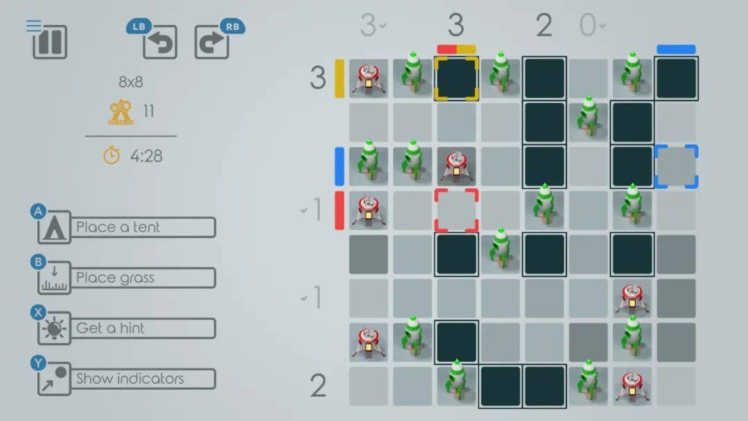 进入原创自然解谜游戏,在每棵树旁边布置一顶帐篷!