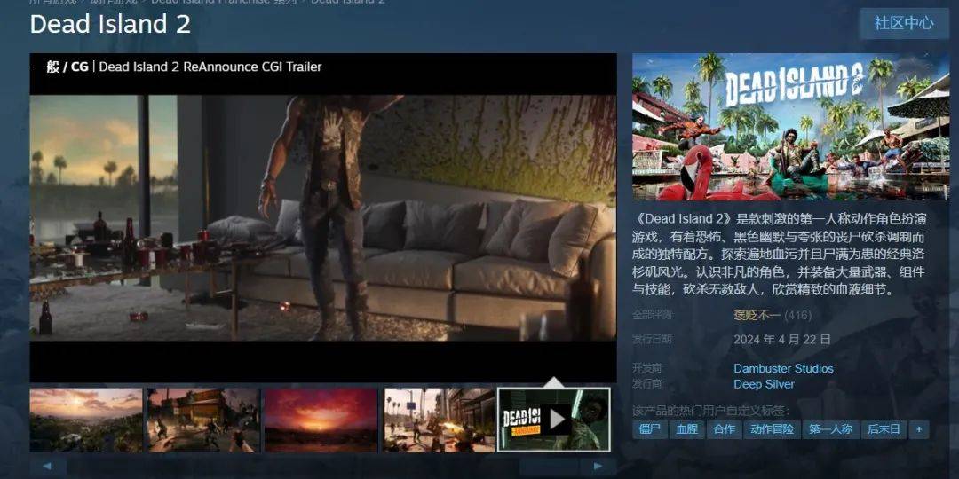 《死亡岛2》结束独占登陆Steam 评价“褒贬不一”