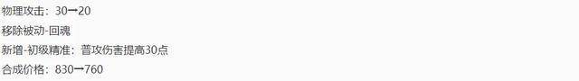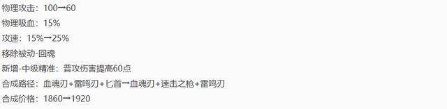 【解读】体验服的制裁之刃,Ad降低了40点,攻速提高了10%,还新增了中级精准且改了价格和合成路径,同时,也移除了回魂被动。