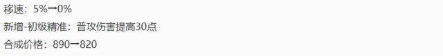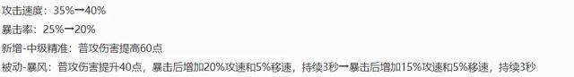 不仅攻速增加了5%,同时,还新增了名字叫做中级精准的被动,可以增加60点普攻伤害。