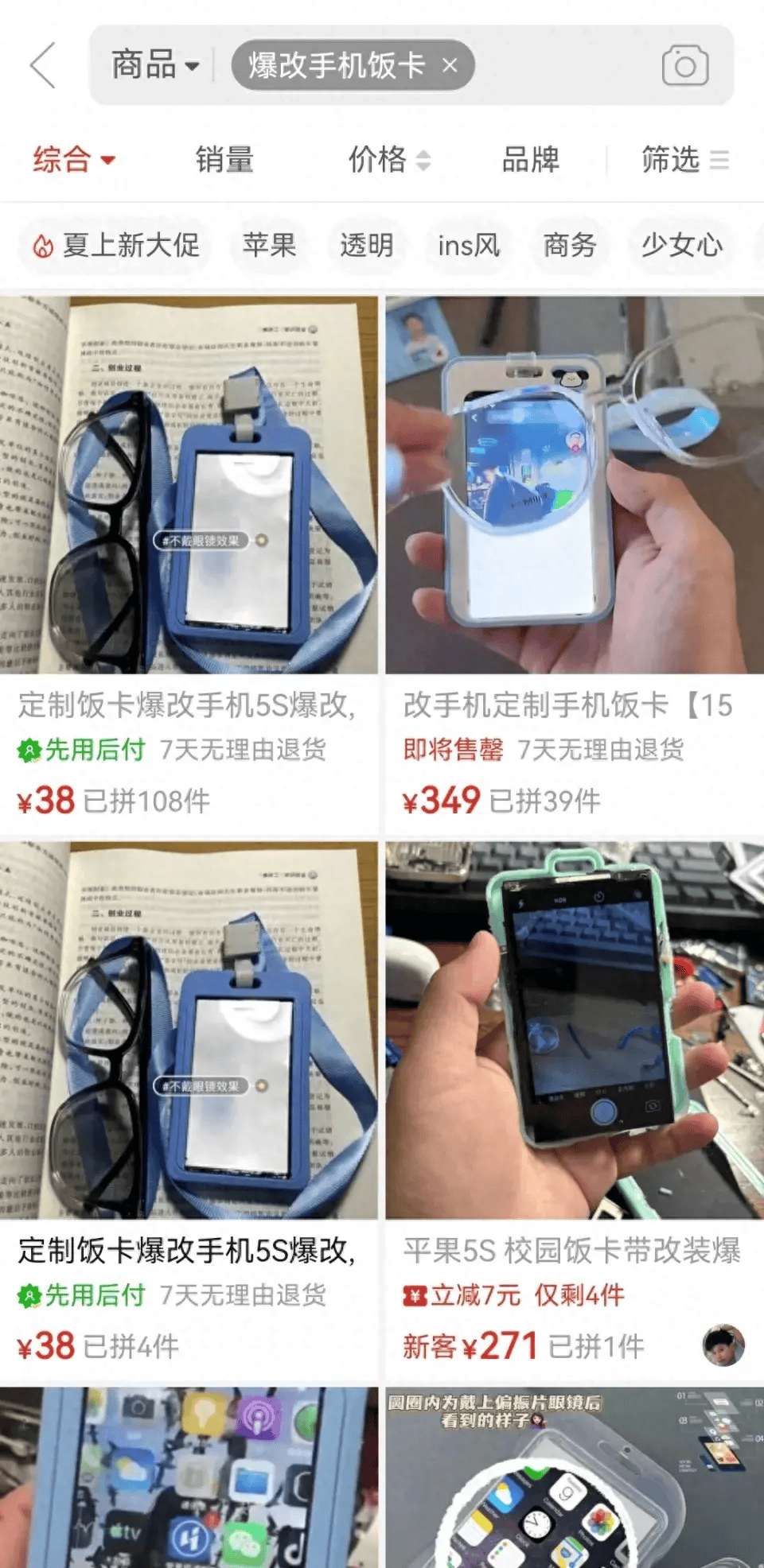 在各大网购及二手商品售卖平台上搜索关键词“爆改饭卡手机”发现,有很多此类产品正在销售,价格在几十到几百元不等,购买数量还不少。