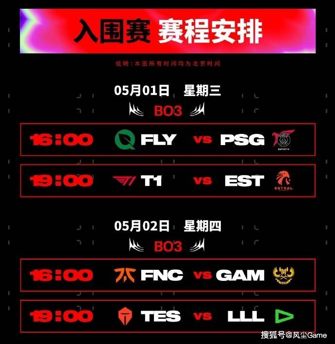 MSI季中冠军赛,再有6天时间就正式打响了,目前各大参赛战斗,都已经开始前往成都,LOL官方在最近,也公布了入围赛的具体赛程,时间安排对于LPL观众来说,简直不要太爽,5月1号下午4点开始,每天安排2场BO3,持续到5号入围赛结束,都不需要熬夜去看比赛。