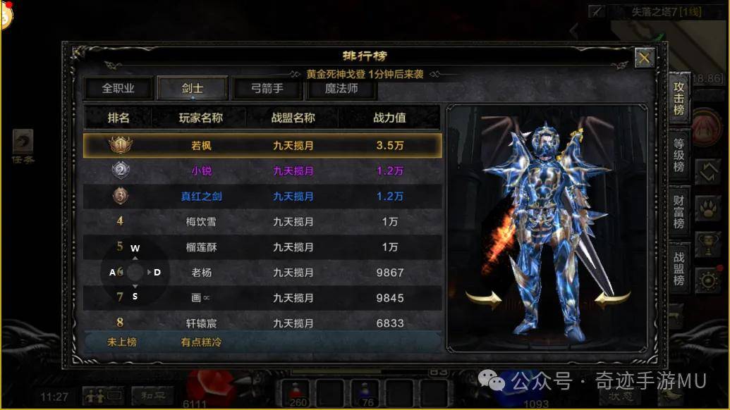 1、剑士:剑士一直都是mu游戏中热门的职业,与战士定位差不多,善于近战,有着强大的单挑能力。