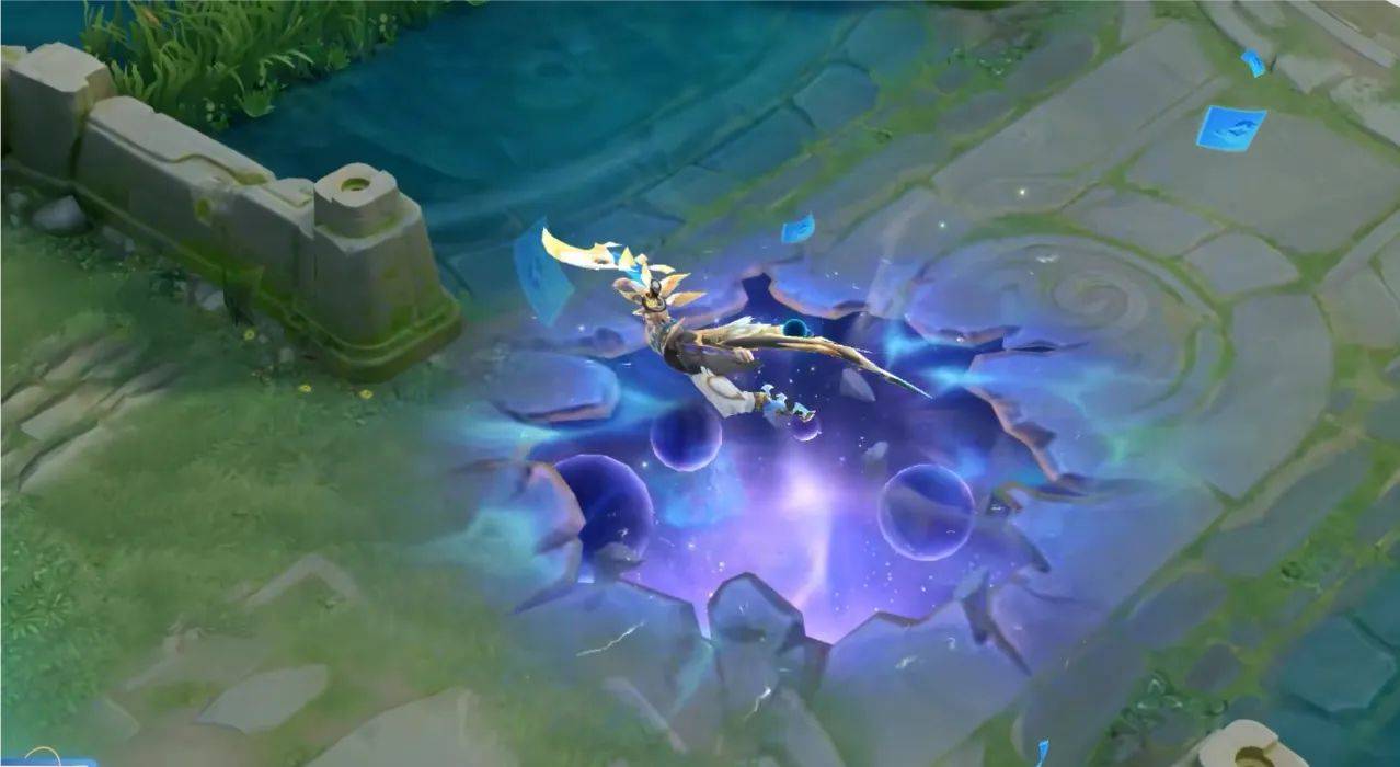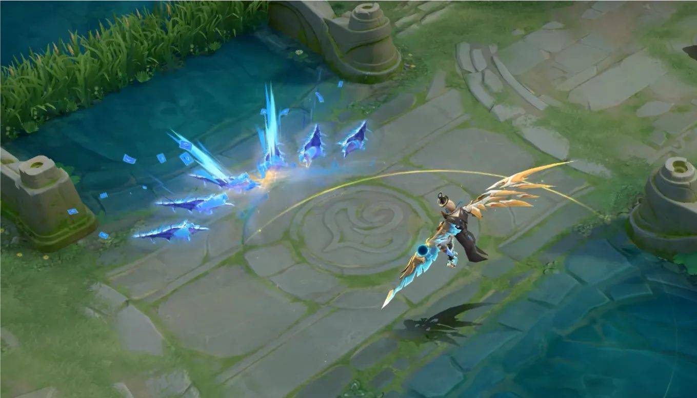 大家可以看一下他的二技能特效是将自己的魔术注入到卡牌之中,金色与蓝色的卡牌构筑成能量冲击波。