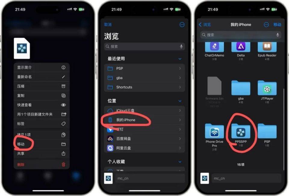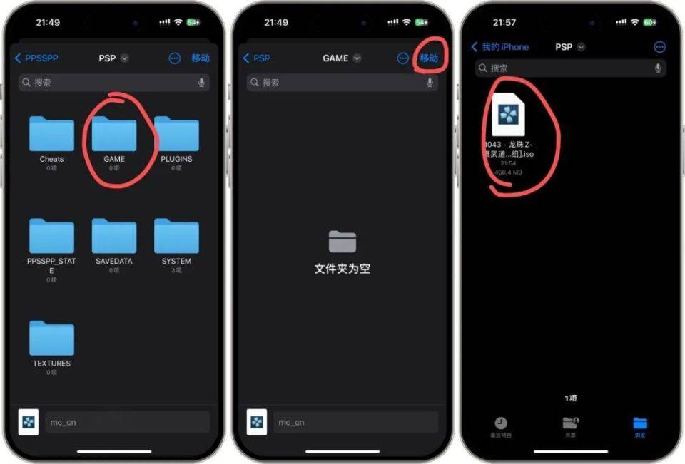 PPSSPP存放游戏文件的位置:文件-我的iPhone-PPSSPP-PSP-GMAE。