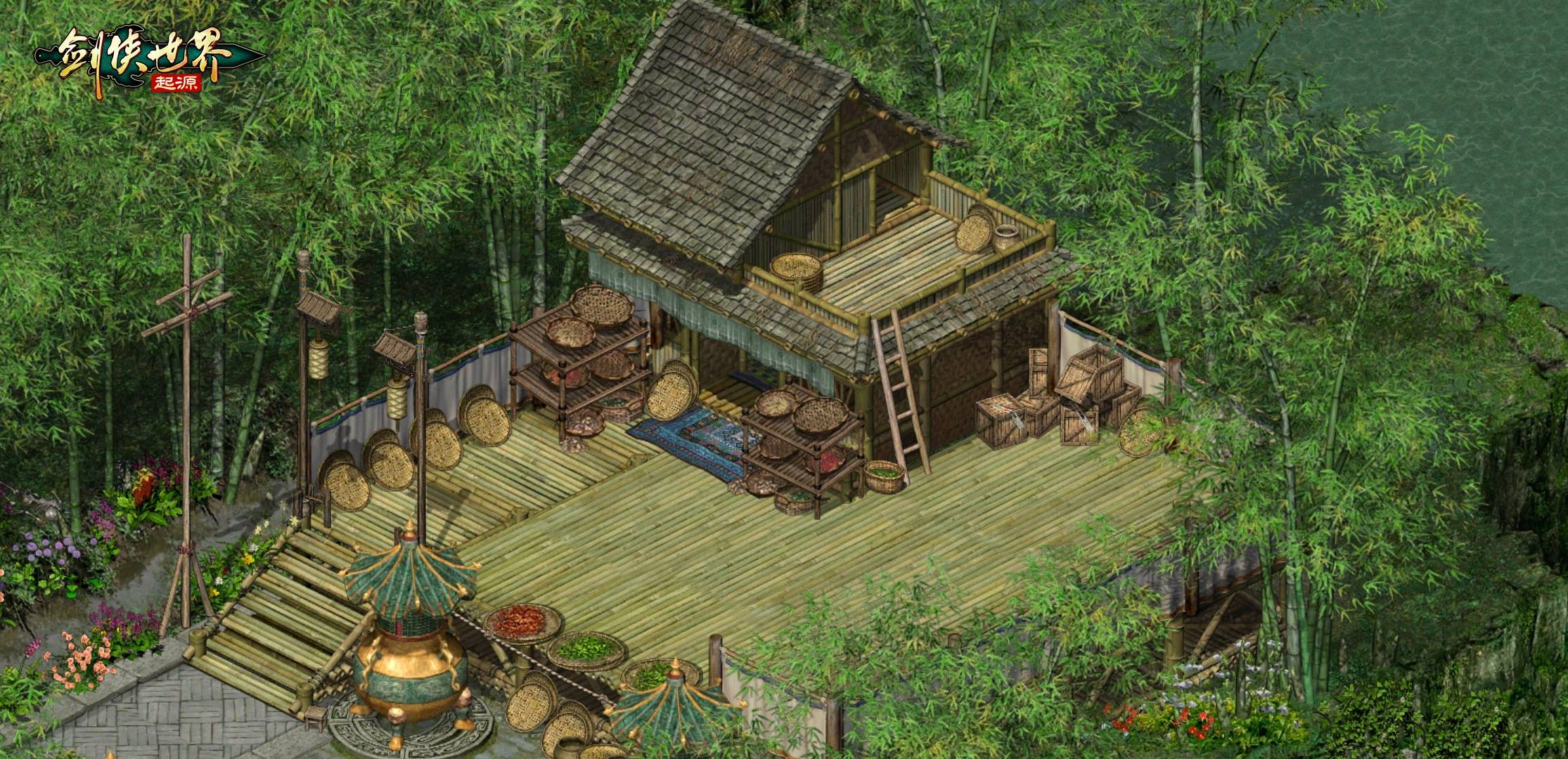 绿竹入幽径,青萝拂行衣。万顷竹林之中,隐匿着神秘莫测的唐门一派。林深悠悠,竹阁亭立,颇有川蜀特色。唐门的木系功法与此番居所息息相生,机关诡秘,暗器难防。