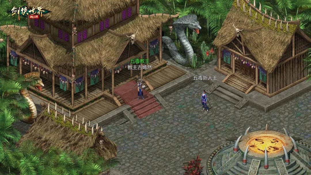 擅蛊的五毒居于岭南密林部落,林间云雾缭绕,蛇蝎潜行,隐秘危险却又美丽迷人,完美呈现苗疆的异域风情,是五毒教奴驭百蛊、修习毒术得天独厚的居所。
