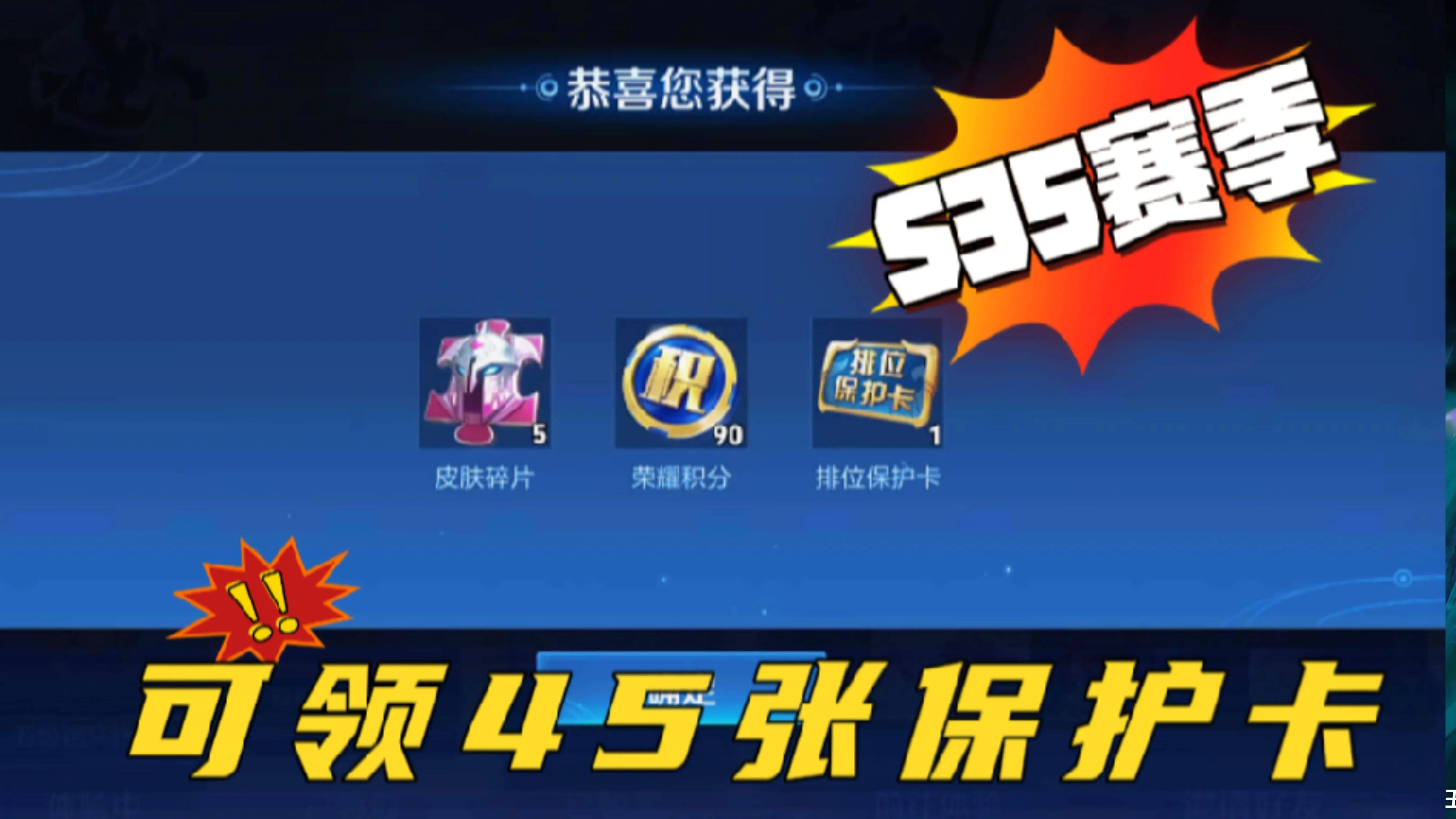 更何况,这个赛季如果你会利用排位保护卡的话,其实上分真的很容易。等你到了王者段位以上,保守估计这个赛季能领取45张排位保护卡。