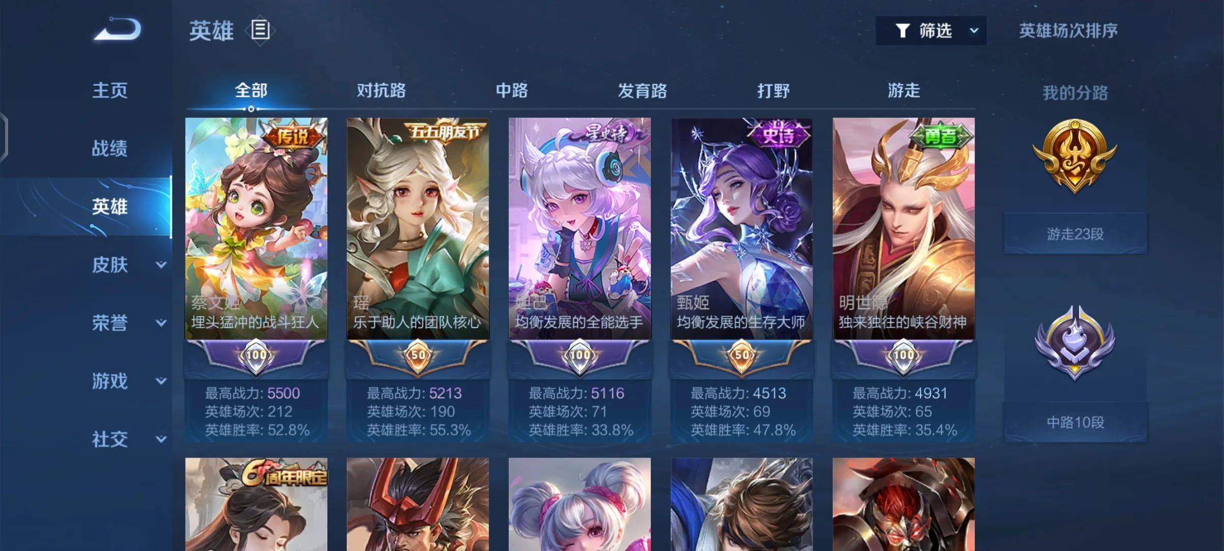 目前段位接近荣耀王者50星。